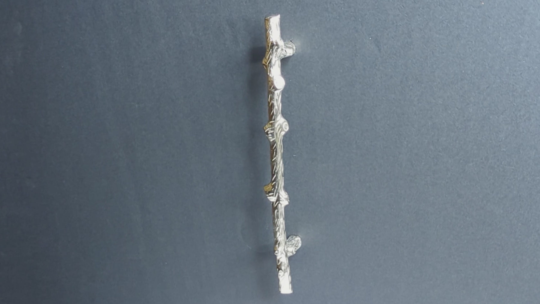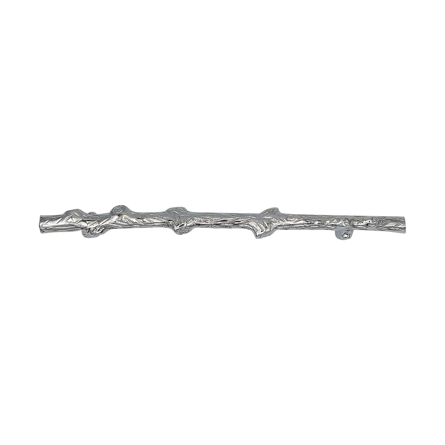 This handle is made from solid brass construction for decades of service. Center to center is 6 inches. The handle measures 8 5/8 inches long with a projection of 1 1/2 inches. Each "branch" is 3/8 inches in diameter. Comes complete with mounting hardware. Available in several finishes. This particular product has a lead time of approximately 1 to 3 business days.