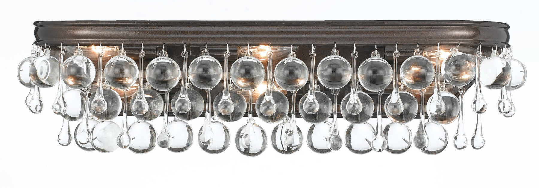 Elegance and glamour will illuminate the room with the Calypso collection. Draped in an abundance of smoothed shaped clear drops and balls, this contemporary collection is a perfect statement to a living room, dining room, bathroom, or entry.