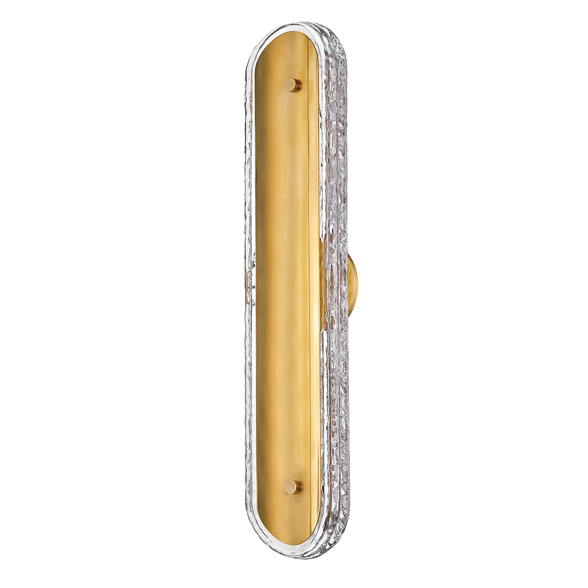 The Macau Wall Sconce by Corbett Lighting is an elegant addition to any space, featuring a clear textured glass shade that beautifully diffuses light. This stunning fixture measures 5.00 inches in diameter and stands 24.00 inches tall, with a 2.50-inch extension. Designed with integrated LED technology, it delivers an impressive 1425 lumens and a color temperature of 2700K for a warm ambiance. The sconce operates at a wattage of 20.00 and boasts a high CRI of 90 for vibrant color accuracy. Available in Burnished Nickel and Vintage Brass finishes, this sconce is ideal for both residential and commercial settings, though it is not UL rated for damp locations and is not field serviceable.