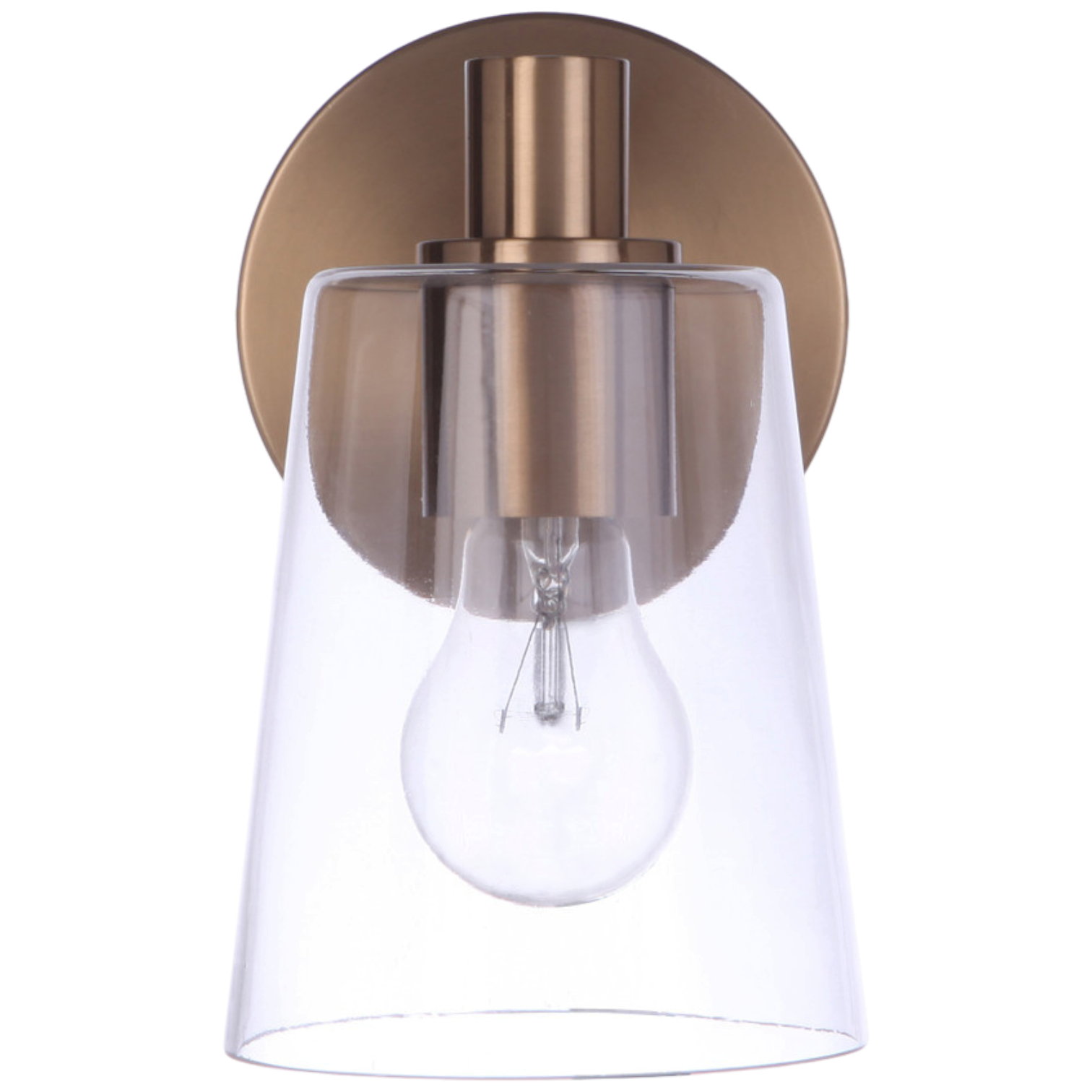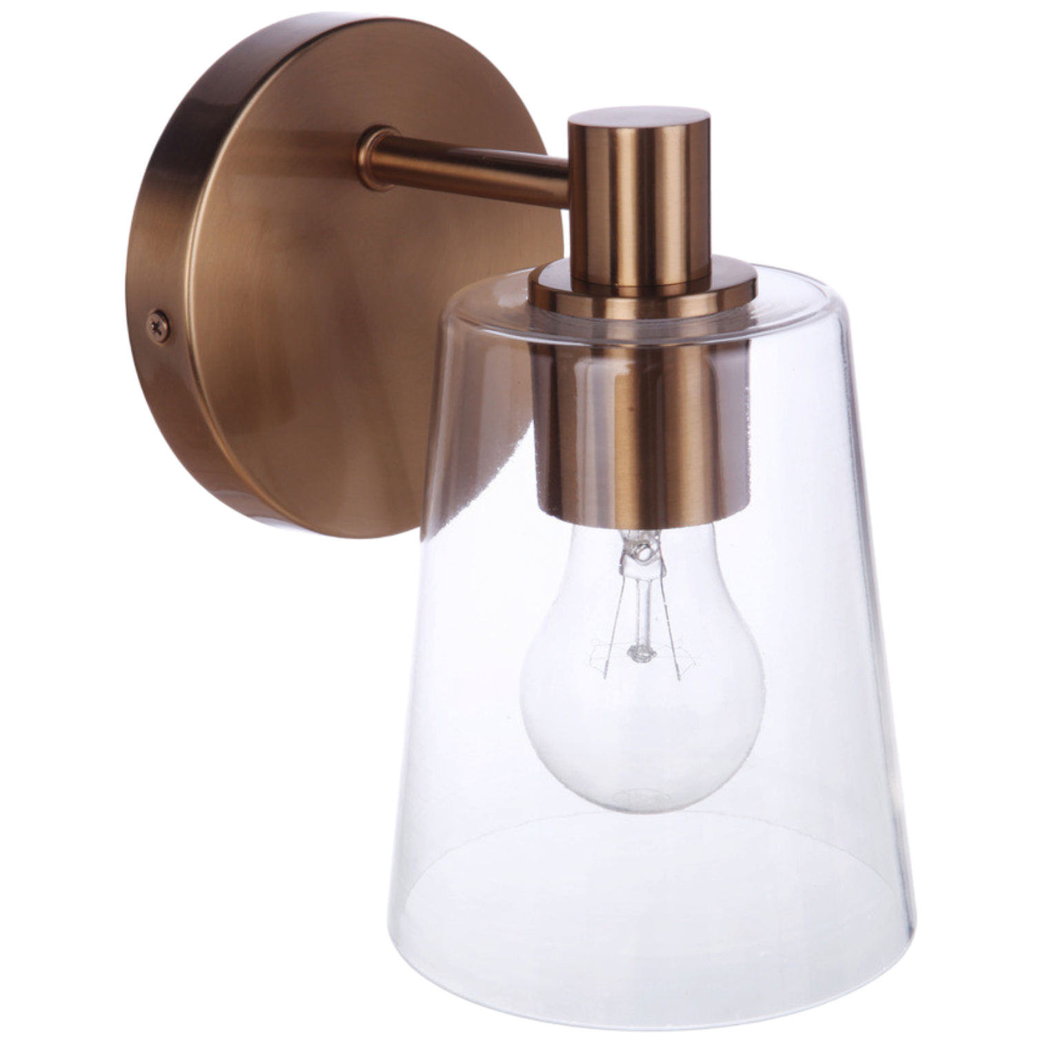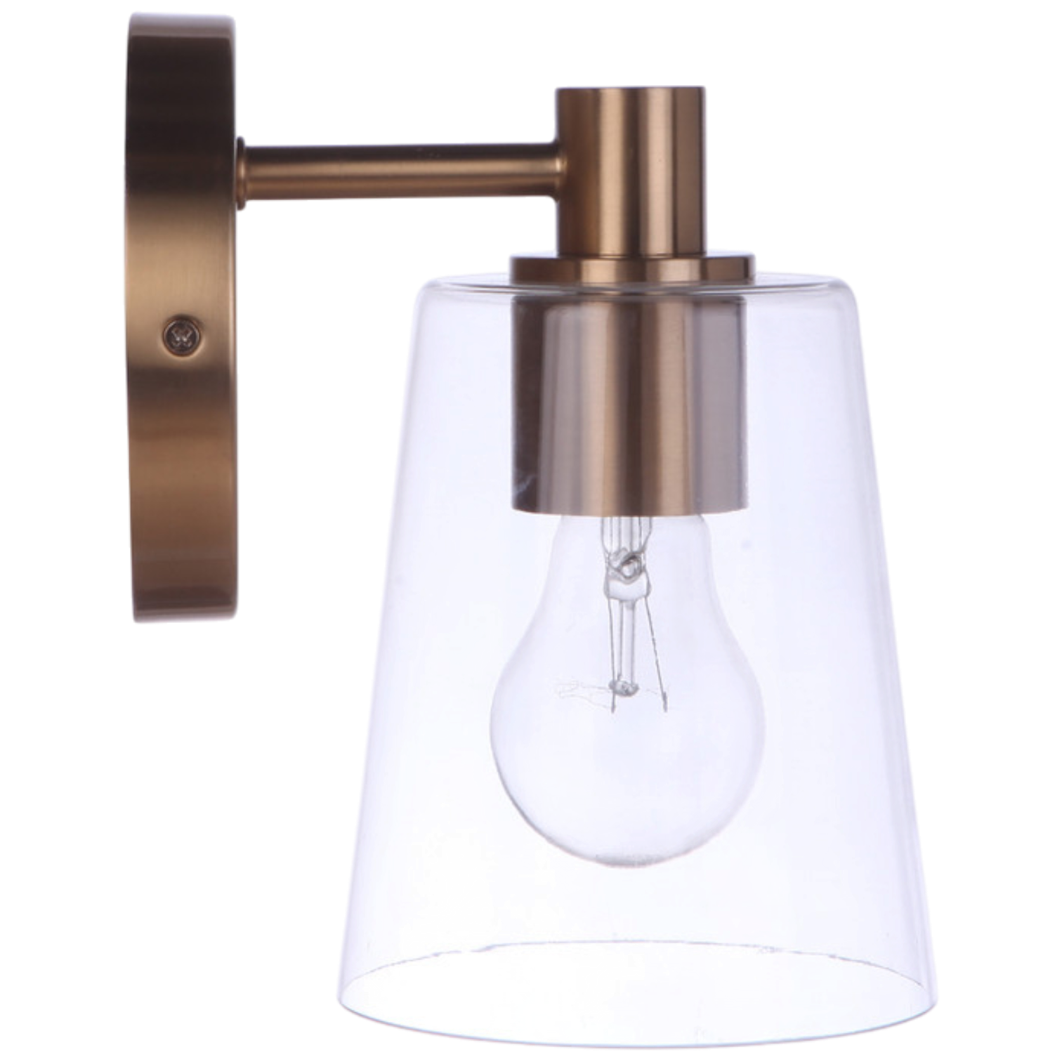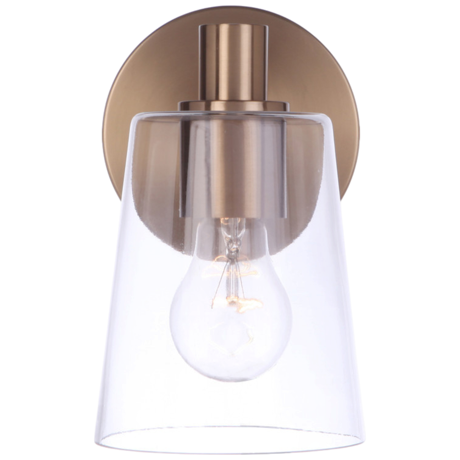 The Emilio 1 Light Wall Sconce in Satin Brass is a perfect blend of transitional style and functionality. This wall-mounted fixture is damp rated, making it suitable for humid environments, and requires one medium base E26 bulb with a maximum wattage of 60W (bulb not included). It features a sleek design with dimensions of 5 inches in width and depth, and an 8-inch height, along with a 6.61-inch extension. The clear glass shade beautifully diffuses light, ensuring bright and clean illumination for any setting.