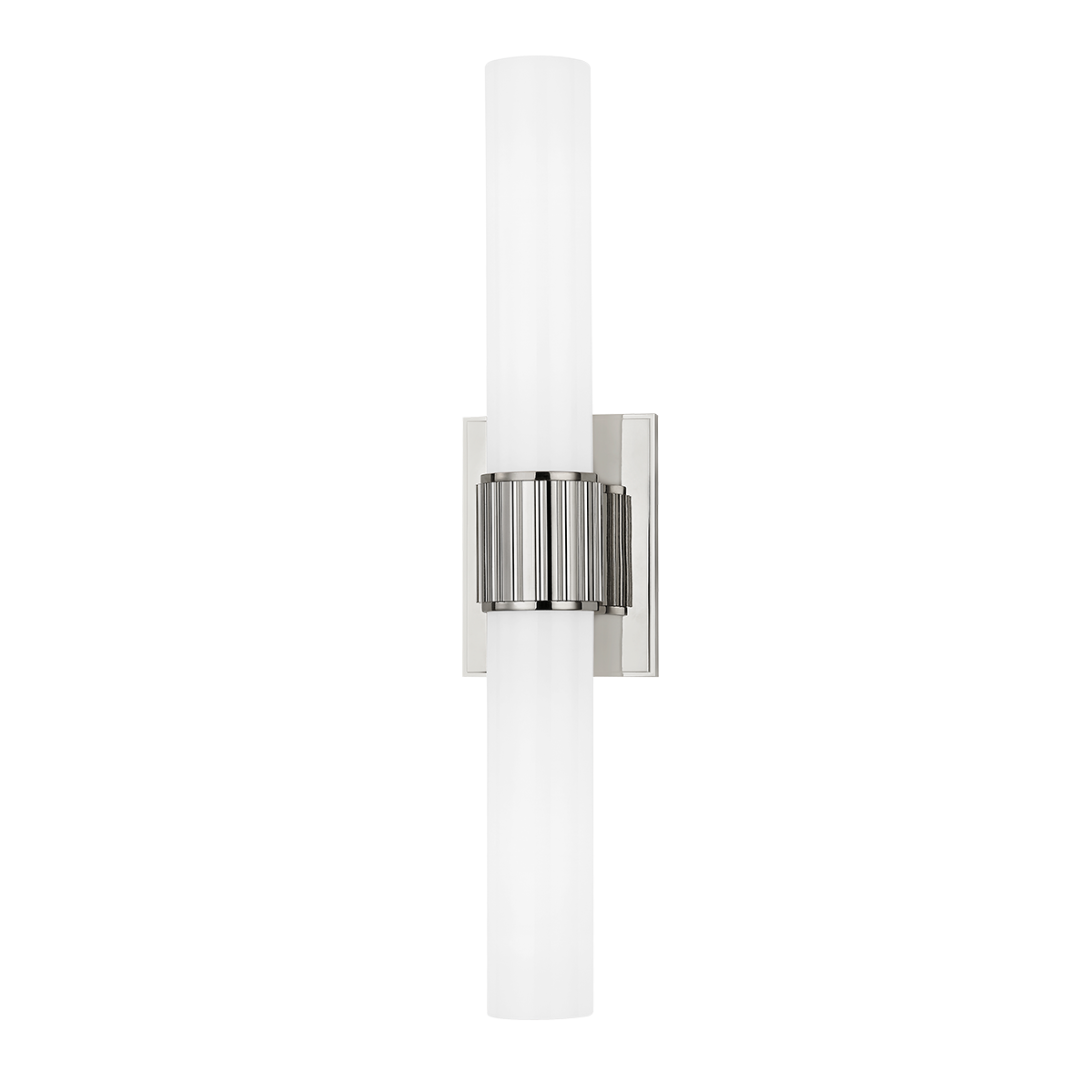 The Fulton Wall Sconce by Hudson Valley Lighting is a sophisticated fixture that combines modern design with functional elegance. Standing at 20.50 inches in height and featuring a width of 4.75 inches, this sconce has a sleek 4.00-inch extension. The opal matte glass shade enhances the ambiance while accommodating two E26 medium base bulbs with a maximum wattage of 75W each (bulbs not included). With a recommended bulb type of T10-5.5, this sconce is suitable for various settings. Available in finish options of Old Bronze, Polished Nickel, and Satin Nickel, the Fulton is UL Damp rated, making it a perfect choice for humid environments such as bathrooms.