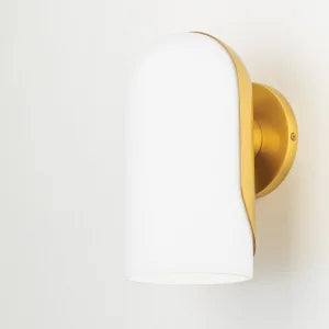 The Mabel Wall Sconce by Mitzi in Aged Brass (AGB) is a sophisticated lighting solution that combines elegance with functionality. This fixture features a stunning glass shade and accommodates one E26 medium base bulb, recommended as an A15 with a maximum wattage of 60W. Measuring 5.00 inches in width and 9.75 inches in height, it extends 6.50 inches from the wall, making it a versatile addition to any space. Rated for UL Damp, it is suitable for use in bathrooms and other moisture-prone areas.