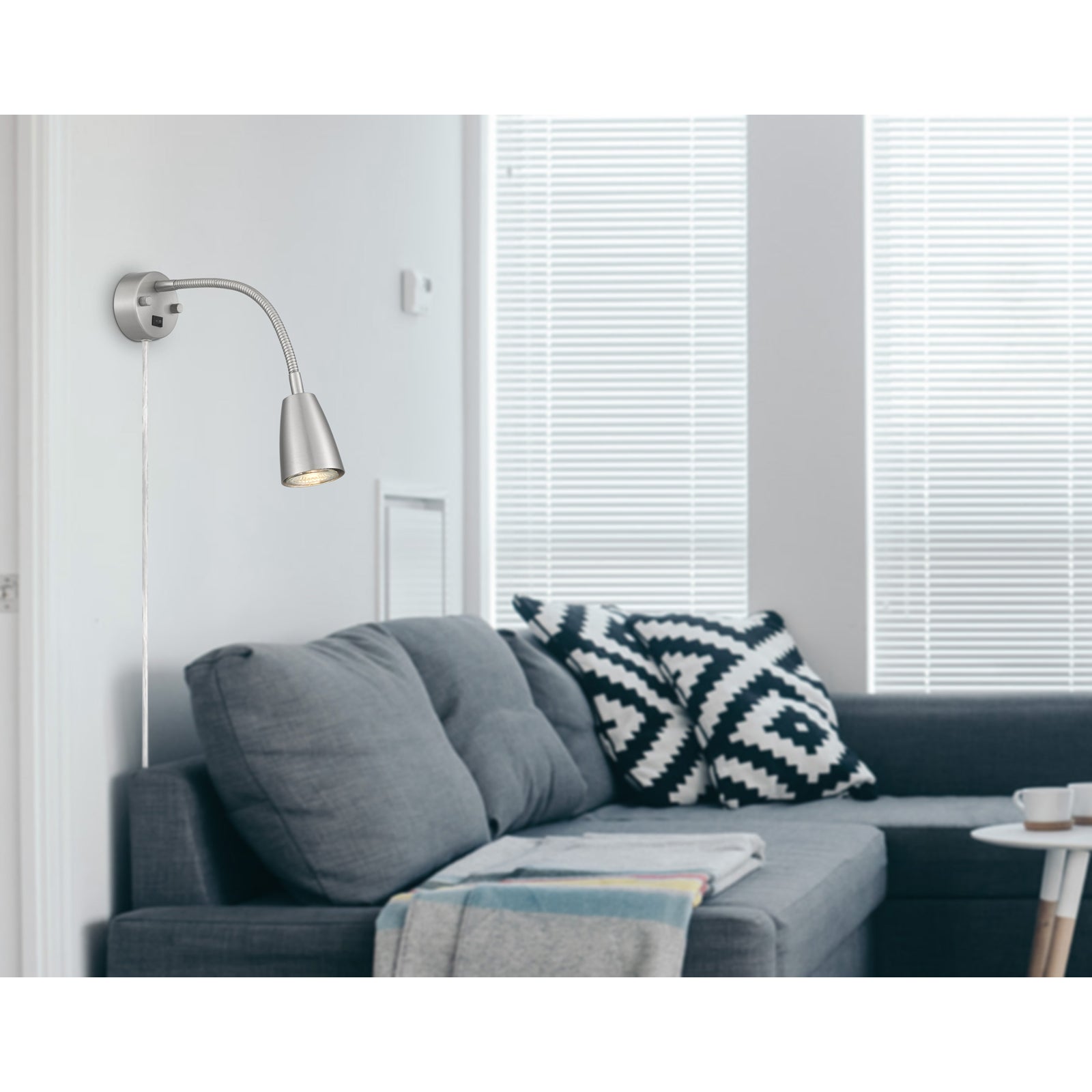 The LA-8047 6W LED gooseneck bedside reading light is an ideal choice for those in need of a flexible and stylish lighting solution. This lamp includes a 6W GU10 bulb and features a durable metal construction with a brushed steel finish, providing both elegance and sturdiness. The flexible gooseneck allows for adjustable positioning, while the rocker switch on the base offers easy on/off control. Measuring at compact dimensions suitable for bedside use, this modern reading light combines functionality and aesthetic appeal, making it a perfect addition to any contemporary decor.
