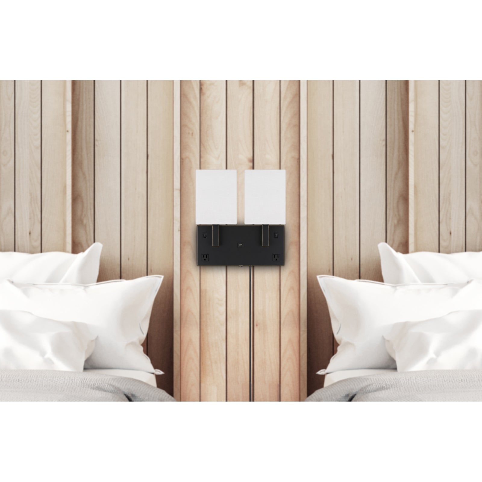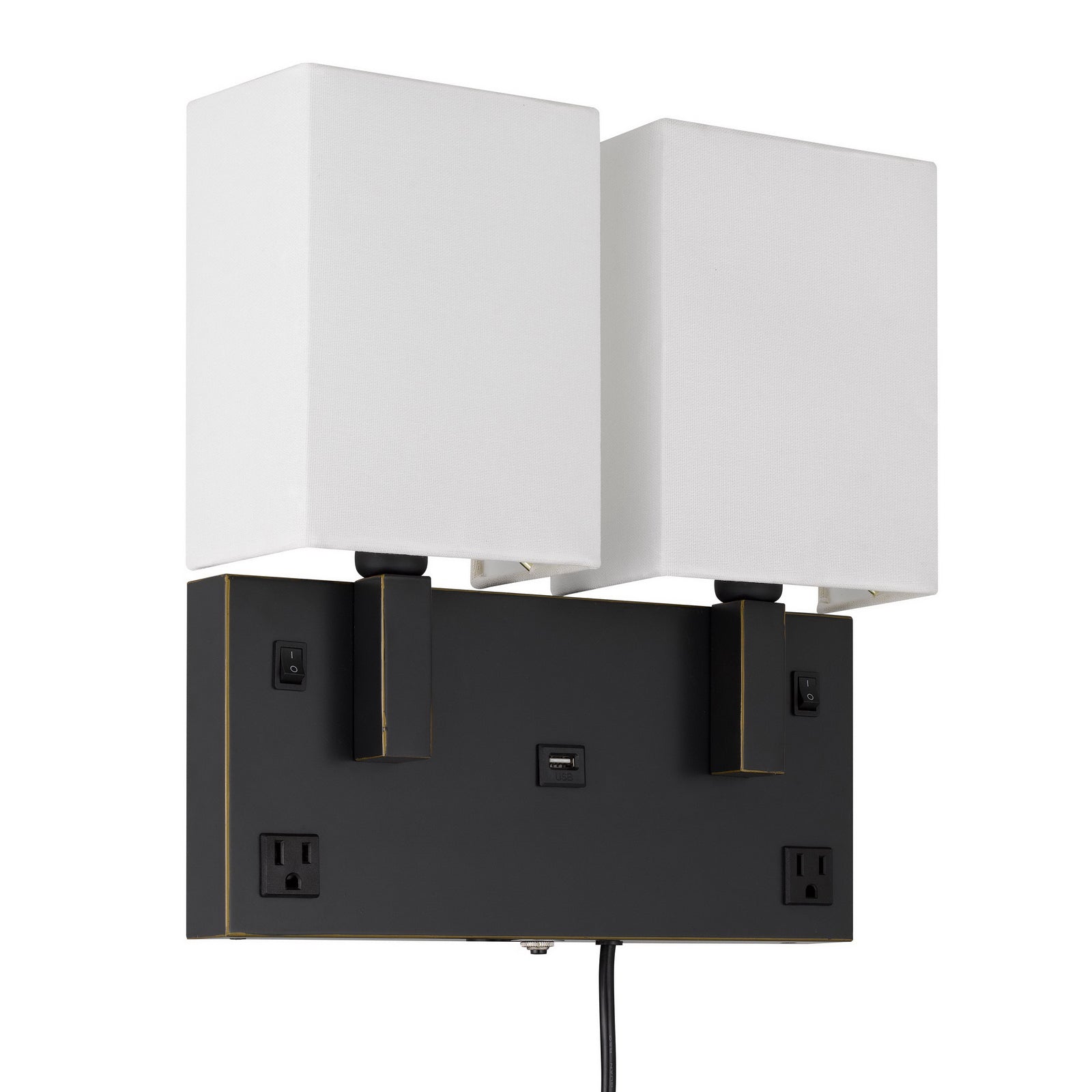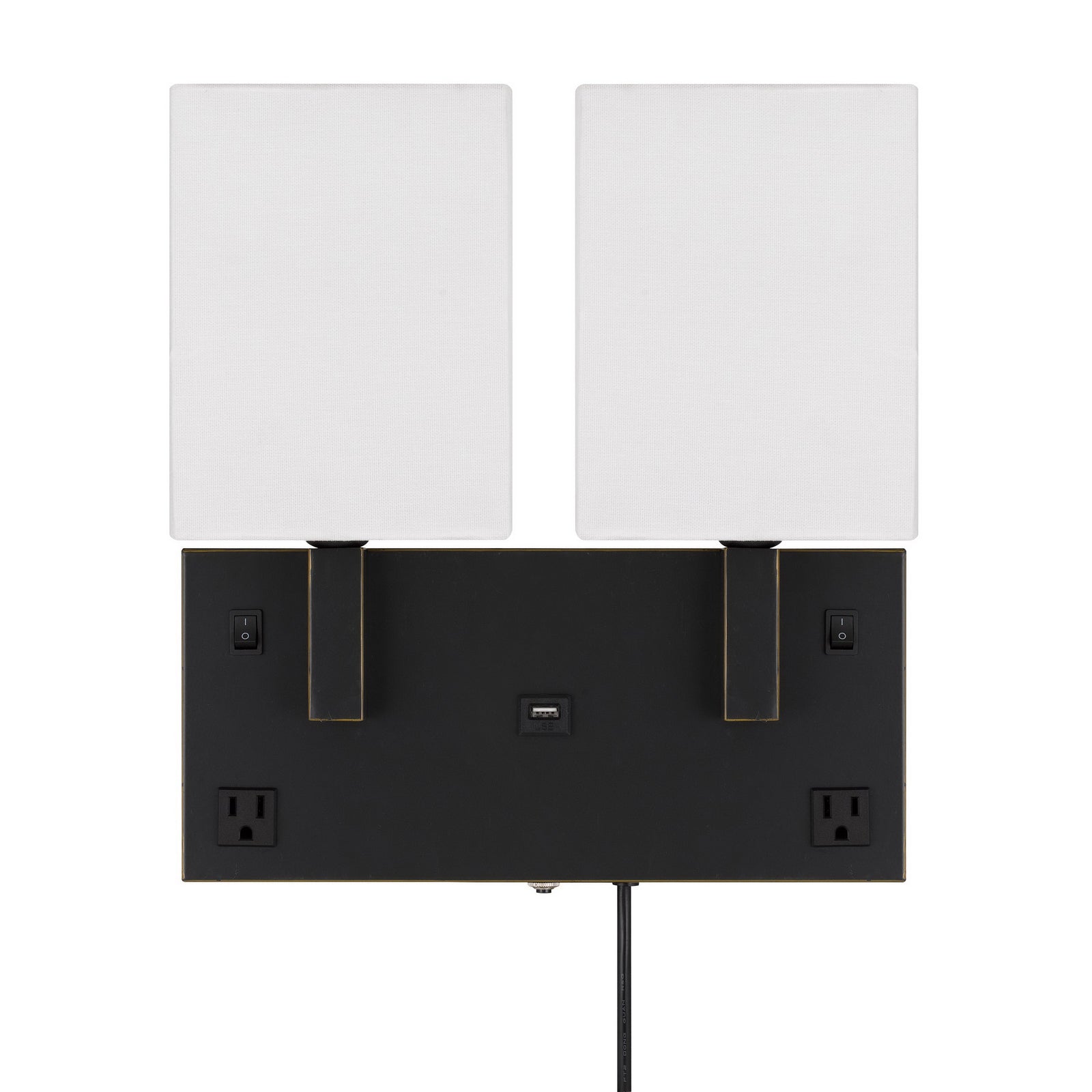 40W X 2 OBERLIN WALL LAMP WITH 2 POWER OUTLETS AND 1 USB CHARGING PORT