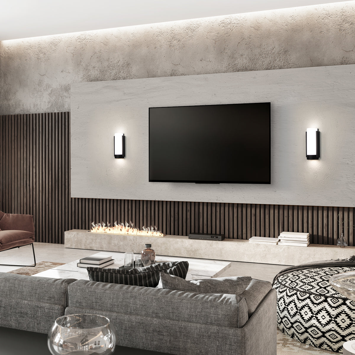 Blake 12in LED Wall Sconce 2700K in Black. Invite Blake into your home. A soulful minimalism shaped with contours and beautiful ambient light. This ADA Compliant LED sconce is available in a black finish and projects downward light and beautiful ambient illumination from an etched opal glass diffuser. Ideal for providing ambient illumination on walls in hallways, dining areas, bedrooms and a multitude of spaces in residential, hospitality and commercial settings. This LED luminaire is powered by driverless ACLEDs that feature a high 90 color rendering index, and operates on a 120 volt system. Order with your desired color temperature and use the built-in color temperature adjustability switch to adjust from warm white 2700K, to soft white 3000K, or bright white 3500K. State of the art LEDs have a 50,000 hour rated life. This LED luminaire is ETL and cETL listed for damp locations and is California Title 24 rated for the highest energy efficient requirements offered today. Dims down beautifully with an electronic low voltage or TRIAC dimming system. Versatile and stately, Blake makes the perfect indoor wall sconce. Features a steel construction with opal glass diffuser that provides both ambient and downward illumination. Blake is ADA rated and damp location listed - can be used indoor or covered outdoor areas. Can be mounted up or down to suit your application. AC LED technology - no driver or transformer required. Easily fits on a pancake junction box. Tri-CCT technology features a switch inside the canopy that is accessible during installation and allows you to toggle color temperatures between 2700K Warm - 3000K Warm White - 3500K White to find and set the perfect color temperature for your space. This fixture is factory pre-set to the CCT ordered and can be modified in the field with the flick of a switch. Smooth and continuous dimming with electronic low voltage (ELV) or TRIAC dimming High Powered Replaceable LED Module CRI: 90, Rated Hours: 50000, Color Temp Adjustability: 2700K-3000K-3500K Standards: ETL & cETL UL 1598 listed with IP44 rating for Damp Locations. CEC Title 24 compliant.
