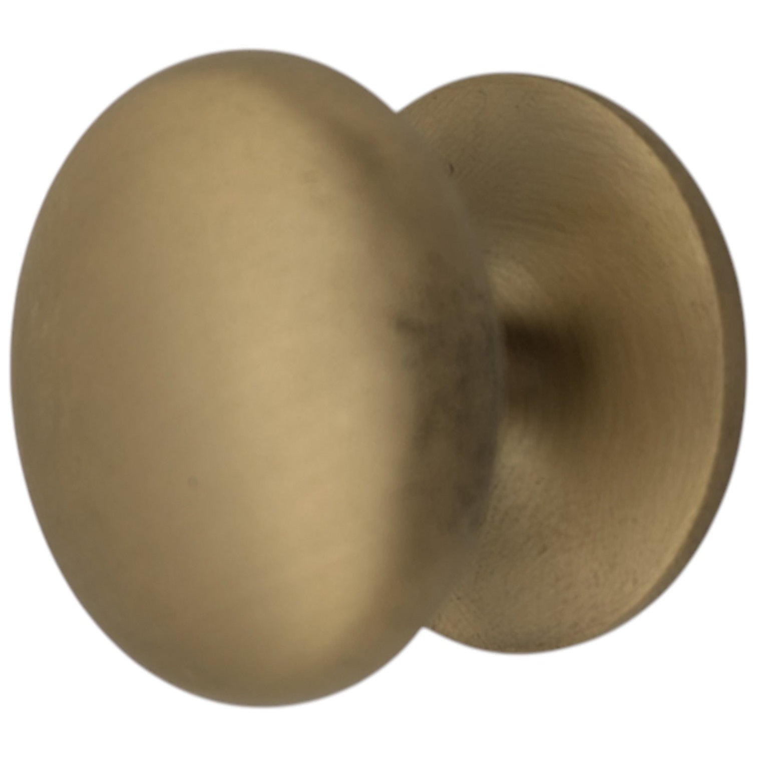 1 1/2 Inch Solid Brass Round Button Knob - measures 1 1/2 inch in diameter with a projection of 1 3/10 inch. This comes complete with the mounting hardware. Available in several different finishes.