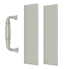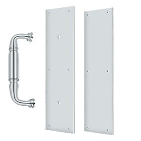 This solid brass set includes both a pull and a push plate. The pull and push plate measure 3 1/2 inches wide by 15 inches tall and comes complete with mounting hardware. Available in polished brass, antique brass, oil rubbed bronze, polished chrome, antique nickel & brushed nickel. This particular product has a lead time of approximately 3 to 4 business days.