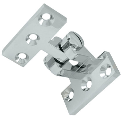 Measures 2 1/2 inches tall by 3 3/4 inches wide. Works as complement of the pivot hinges for large doors and comes complete with mounting hardware. Available in several finishes, including polished brass, antique brass, oil rubbed bronze, polished chrome and brushed nickel. The average lead time for this hinge is approximately 3 to 5 business days.