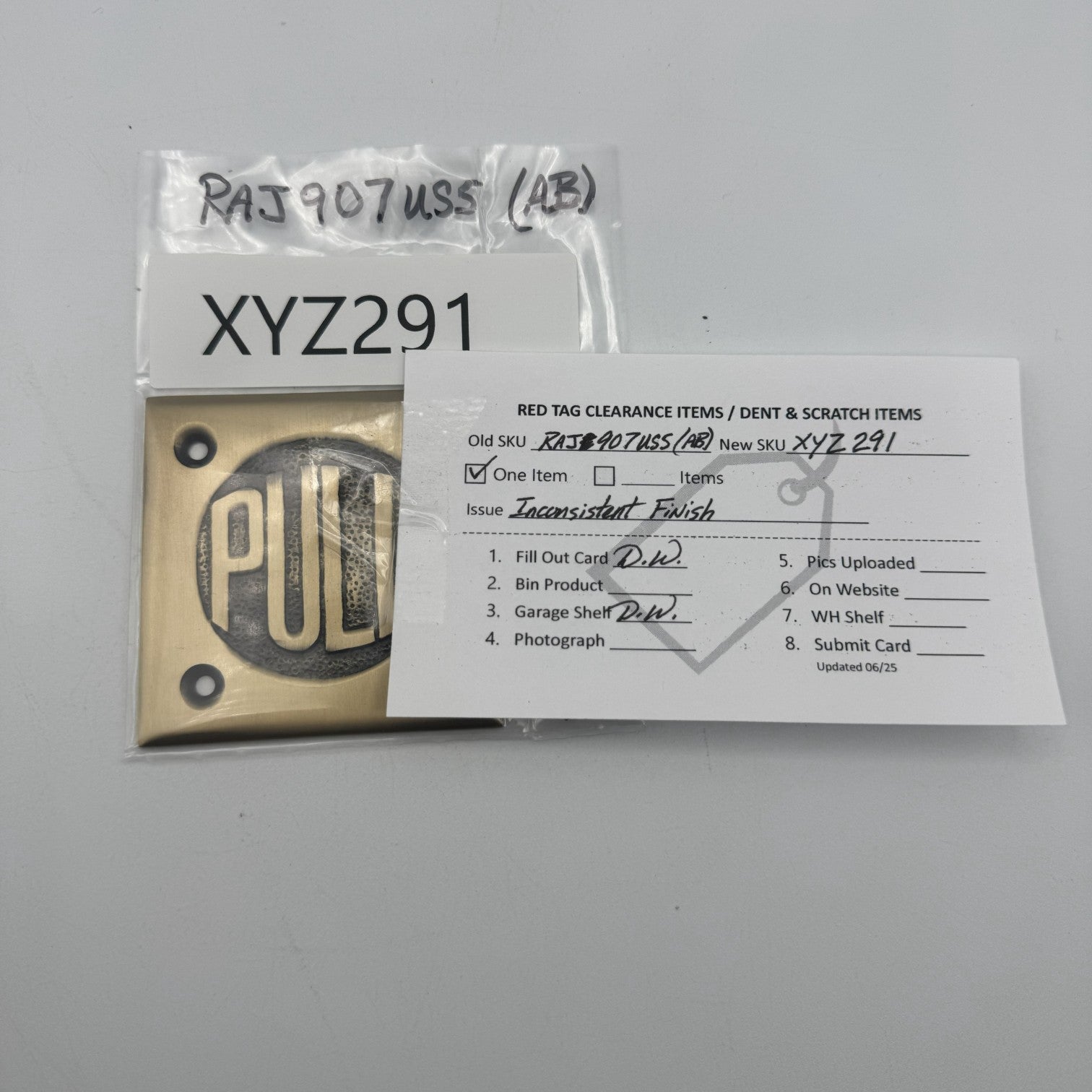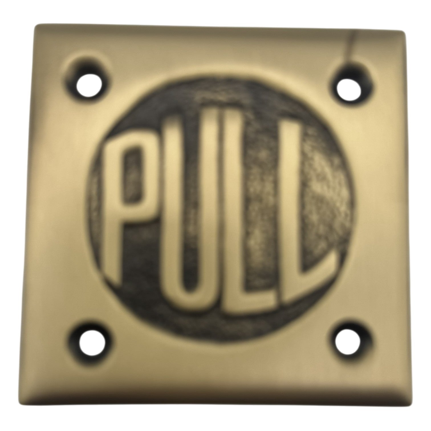 2 3/4 Inch Brass Classic American "PULL" Plate (Antique Brass Finish)
