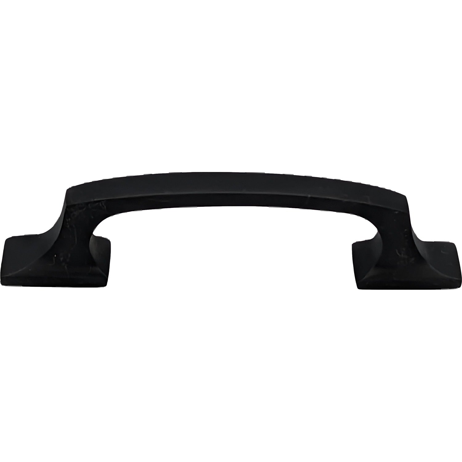 Measures 5 1/4 inch long with 3 3/4 inch center-to-center mounting distance (3.75 c-c) with a projection of 1 1/4 inch. This solid brass pull is great for doors as well as larger cabinets or pieces of furniture. This is available in several different finishes.