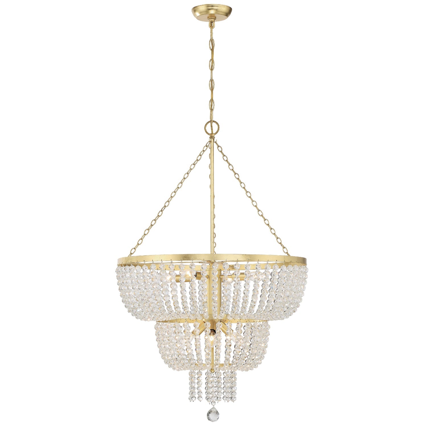 A traditional Empire shape meets modern elements in Crystorama's Rylee Collection. A circular-shaped hand-painted frame gives this fixture a vintage, distressed look, while the beads lend to a bohemian style flare. The Rylee creates a rich visual impact on any space in a perfect combination of texture and materials.