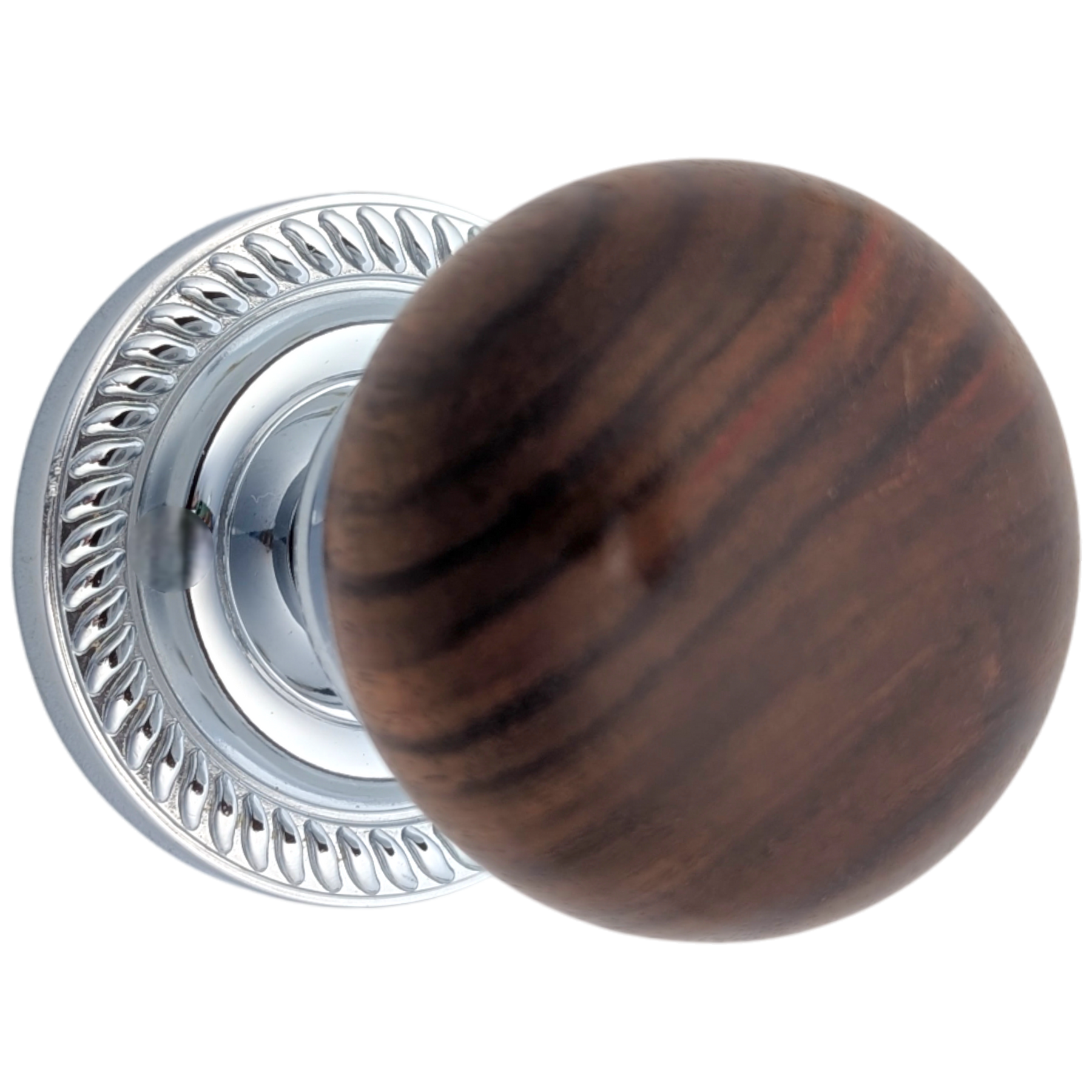 Rosewood, prized for its deep, rich tones and fine grain, has been valued for centuries in fine woodworking and furniture making. Its natural beauty and durability made it a favored material for decorative accents, including doorknobs and handles.