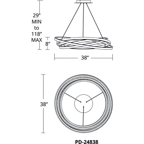 Interlocked bands of metal loop around and around on this simple yet oblique design, a formal puzzle that inspires awe and envy in your guests. Available in black or sleek titanium, Veloce’s rings can be adjusted for a more personalized shape. Thin, coated cables maintain a clean, refined look while also delivering power to the design.
