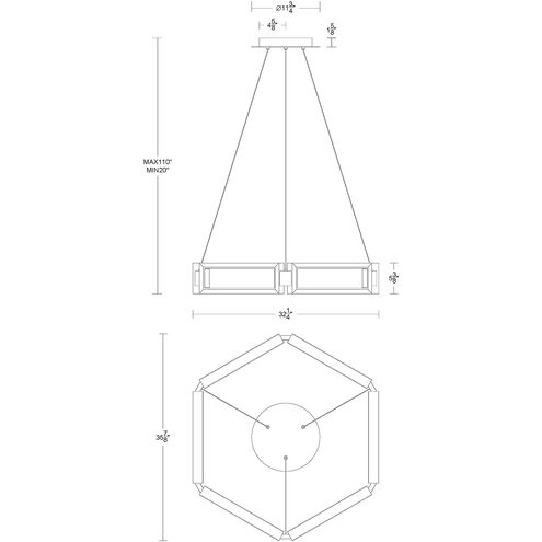 Inspired by Mies van der Rohe, one of the pioneers of modern architecture, this hexagonal chandelier nails the minimalist aesthetic while observing modern décor trends with its aged brass finish. Cutting-edge LED modules bring beautiful light into every setting, while ultra-thin aircraft cables connect the hexagon to a circular canopy for a subtle geometric contrast. Energy-efficient integrated LED's provide a long-lasting maintenance-free bright and even illumination.