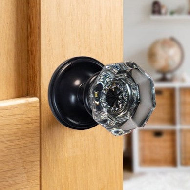 Traditional Rosette Door Set with Octagon Crystal Door Knobs (Several Finishes Available)