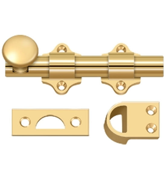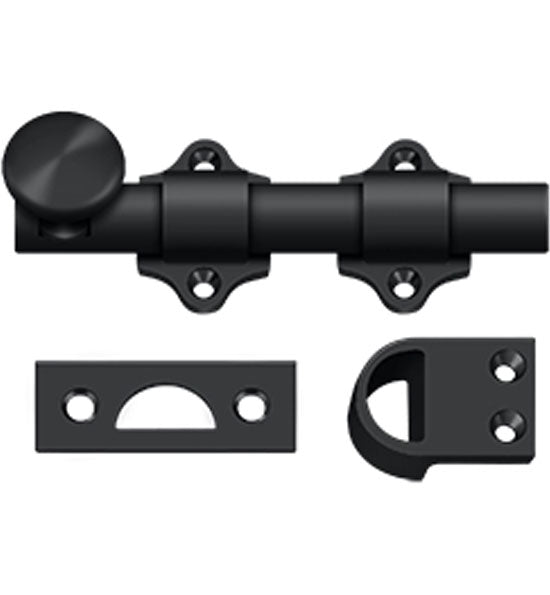 This door bolt is made from solid brass. This Dutch door bolt set is for an exterior mount (no mortise required) and this item comes complete with the mounting hardware. This item is available in a variety of finishes including Polished Brass, Antique Brass, Lifetime Polished Brass, Oil Rubbed Bronze, Flat Black, Polished Chrome, Brushed Nickel, Brushed Chrome, and Antique Nickel. The average lead time for this particular product is 3 to 5 Business Days.